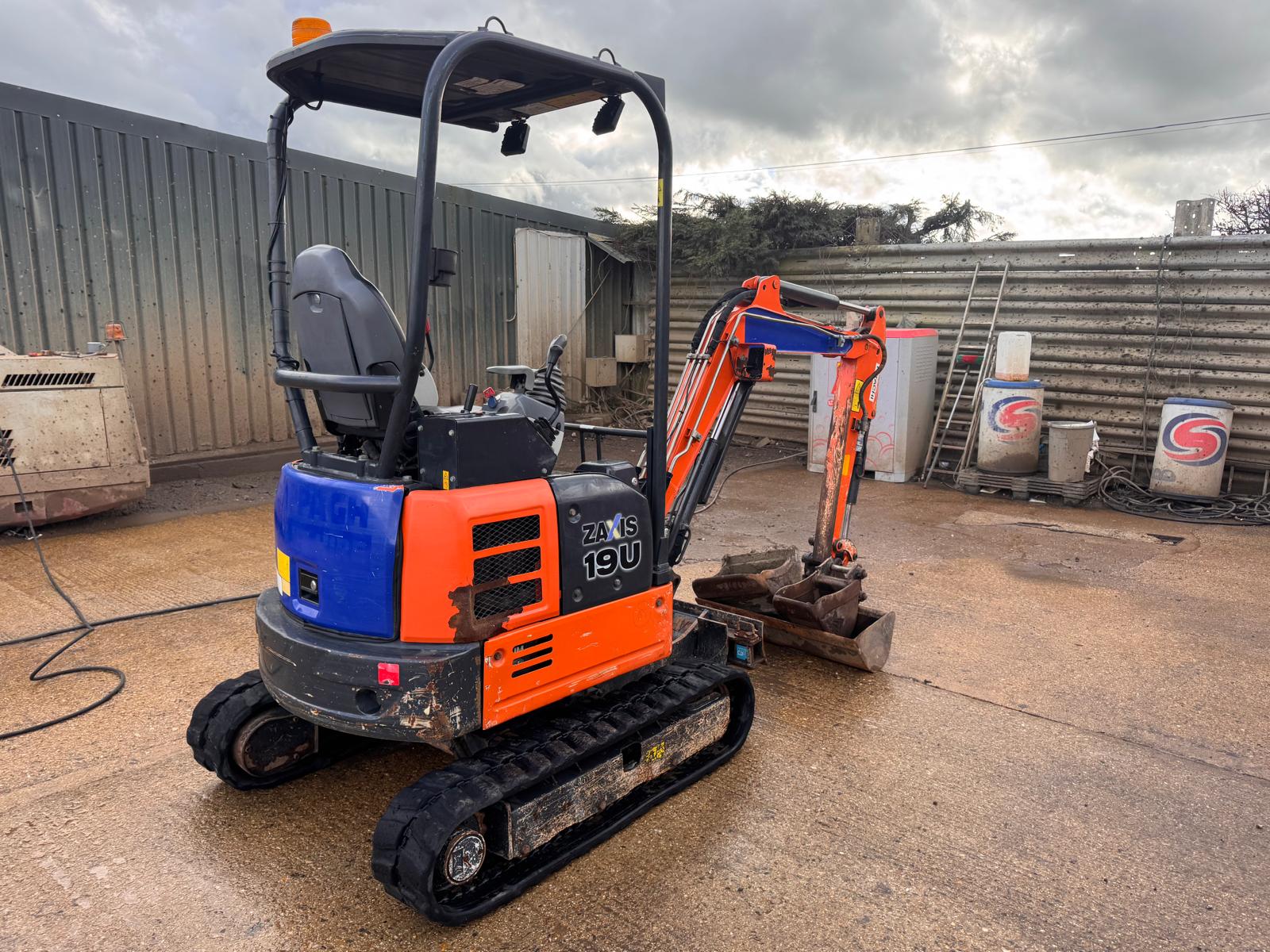 2017 HITACHI ZX19U-5A YR MINI EXCAVATOR, 2300 HOURS, 3 BUCKETS, MANUAL QUICK HITCH, WIDENING TRACKS, BLADE, HAMMER LINES, WORK LIGHTS, BEACON, GOOD MACHINE READY FOR WORK