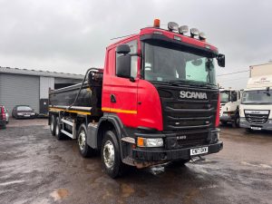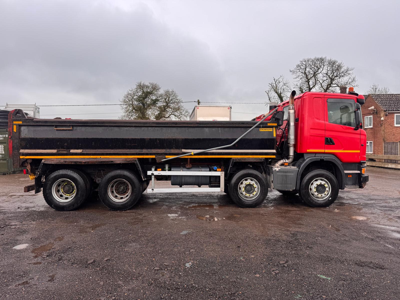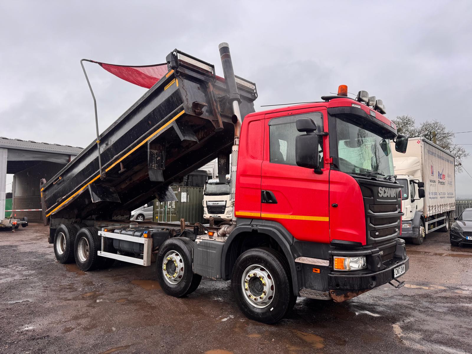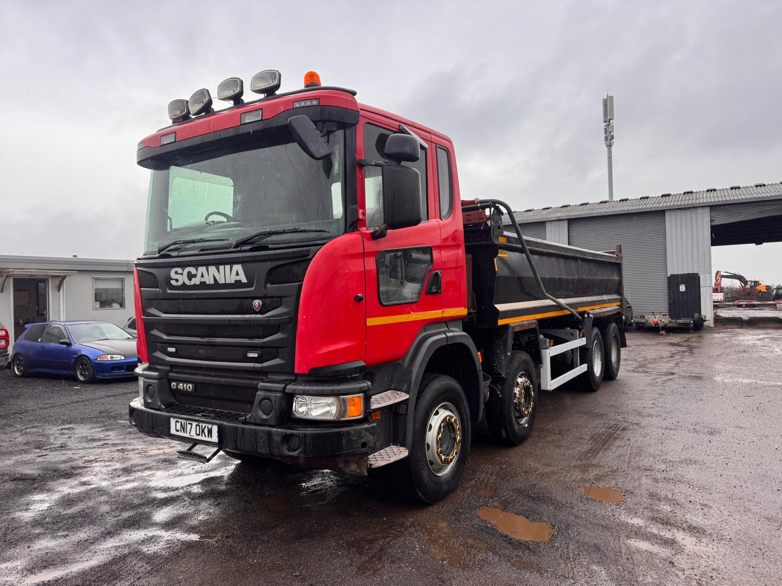 2017 SCANIA G410 TIPPER, 8X4, MANUAL GEARBOX, THOMPSON BODY, AUTO TAILGATE, EASY SHEET, AUTO GREASER, 600,000KMS, ON BOARD WEIGHER, BEACONS, CAMERAS, BLUETOOTH, A/C, CHOICE OF 2 AVAILABLE