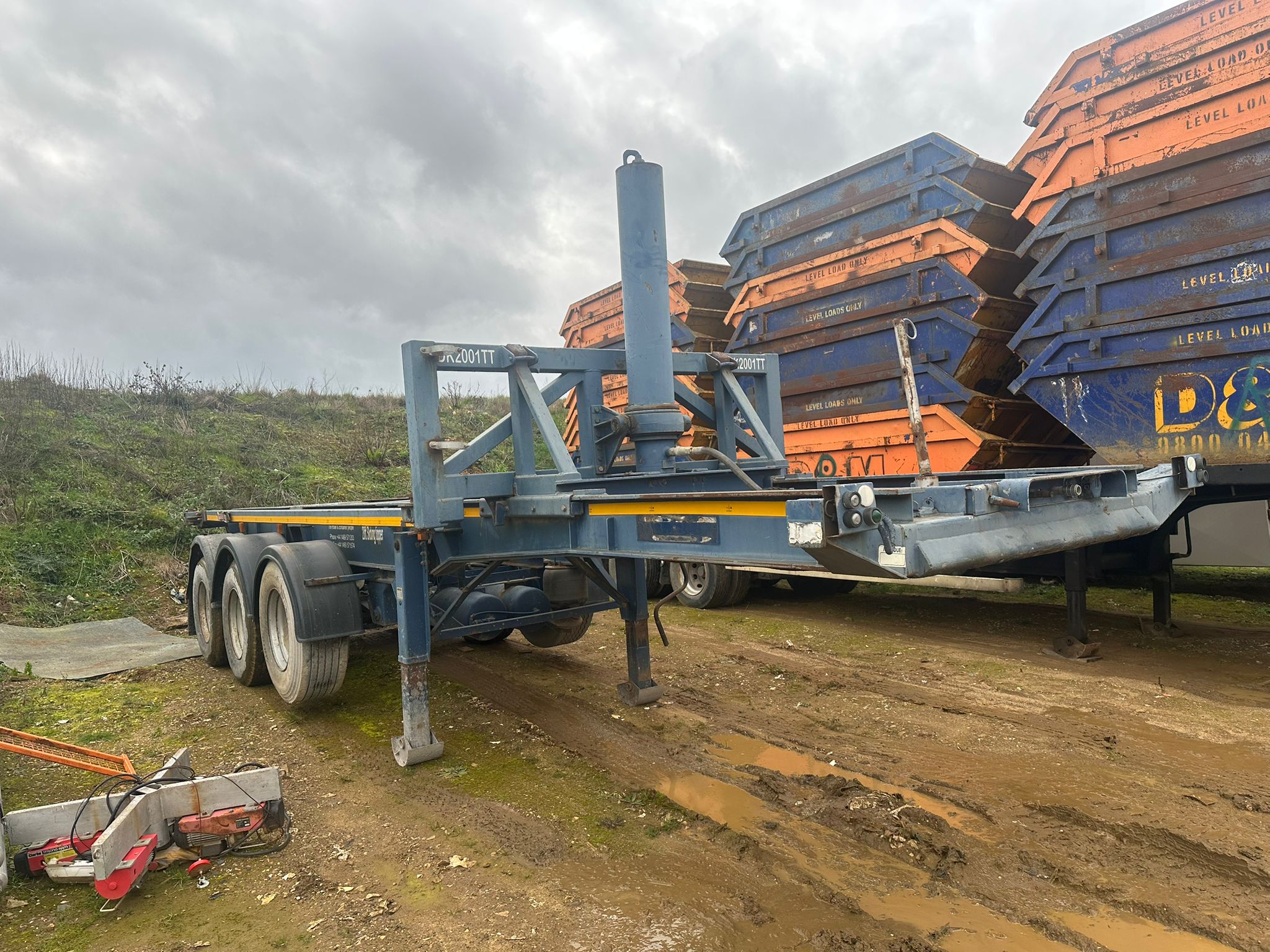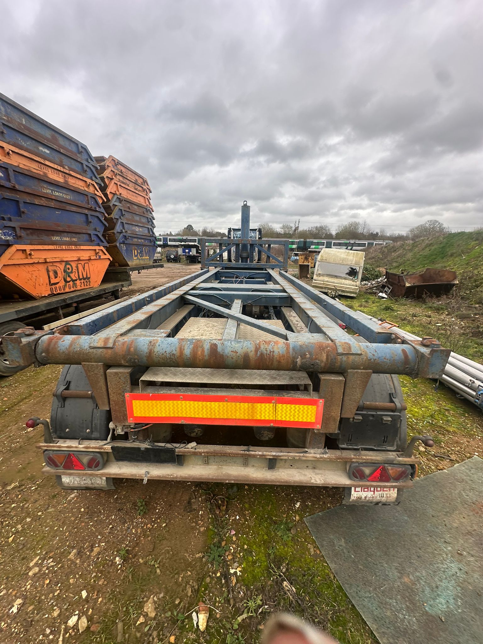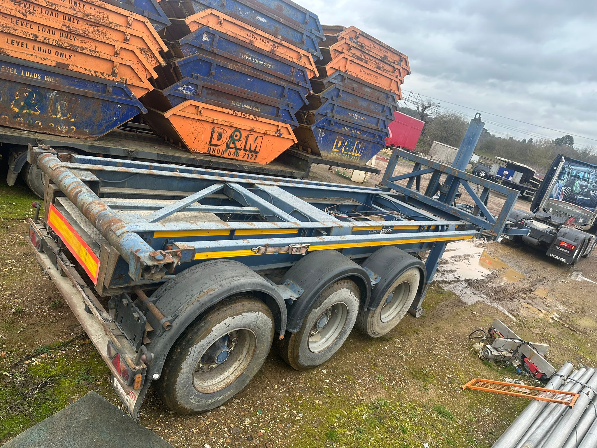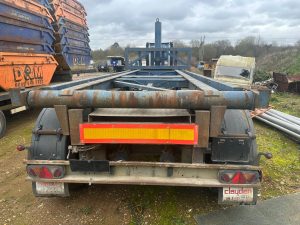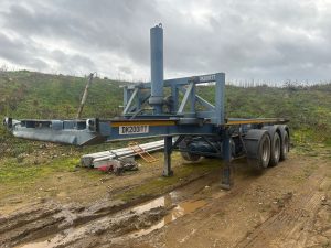 1997 DENNISON TIPPING SKELETON TRAILER, DRUM BRAKES, WORKING ORDER