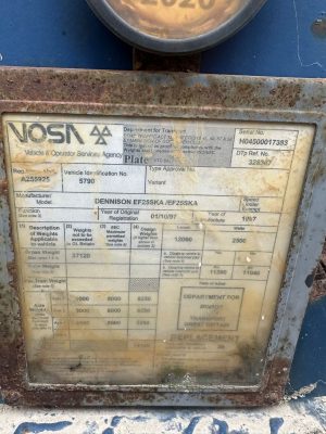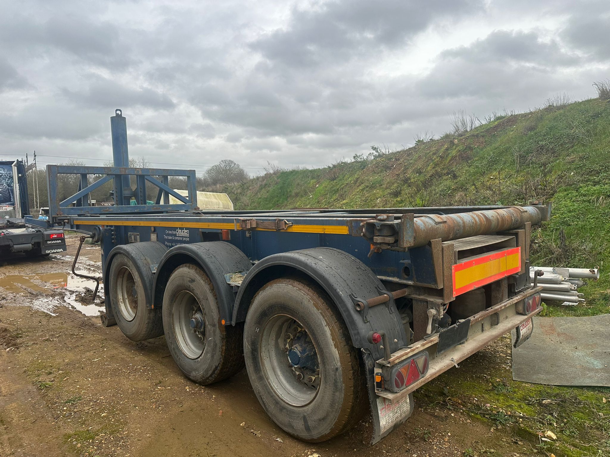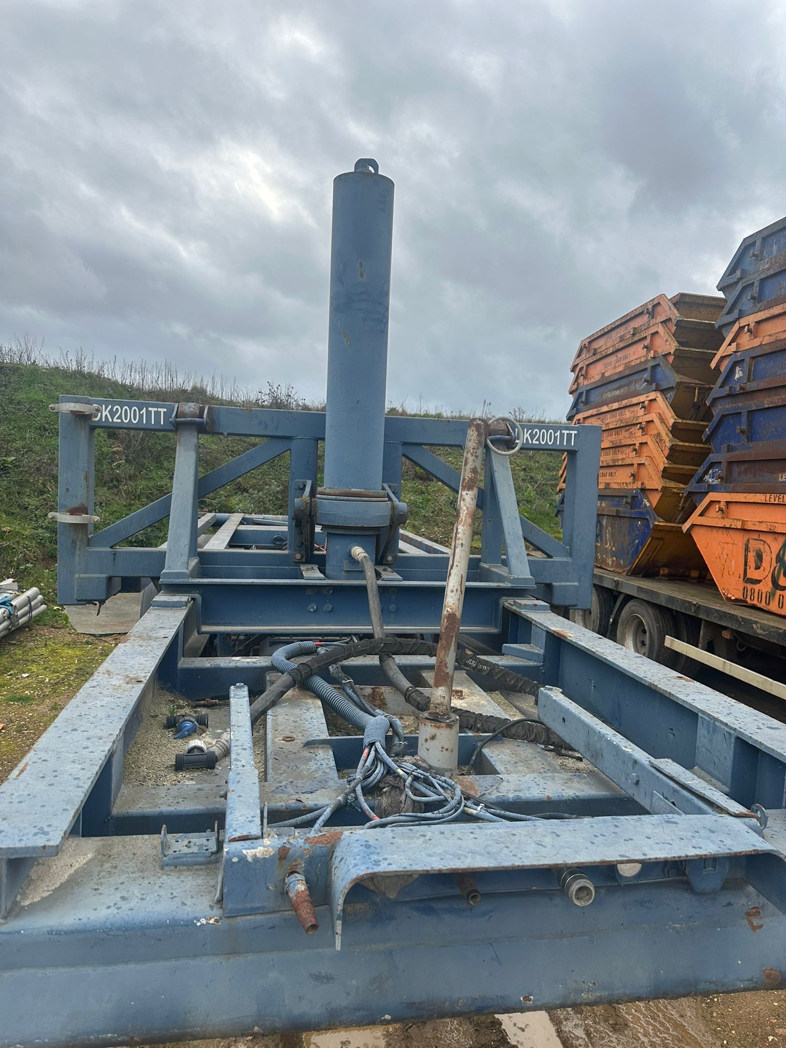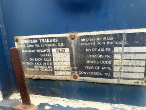1997 DENNISON TIPPING SKELETON TRAILER, DRUM BRAKES, WORKING ORDER