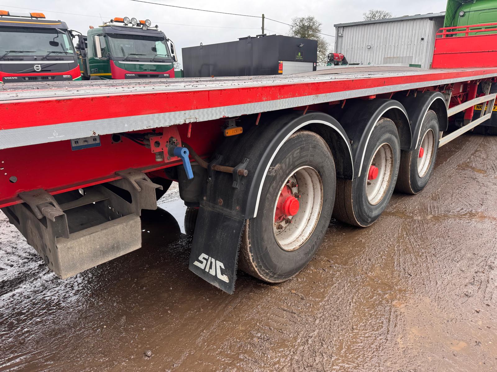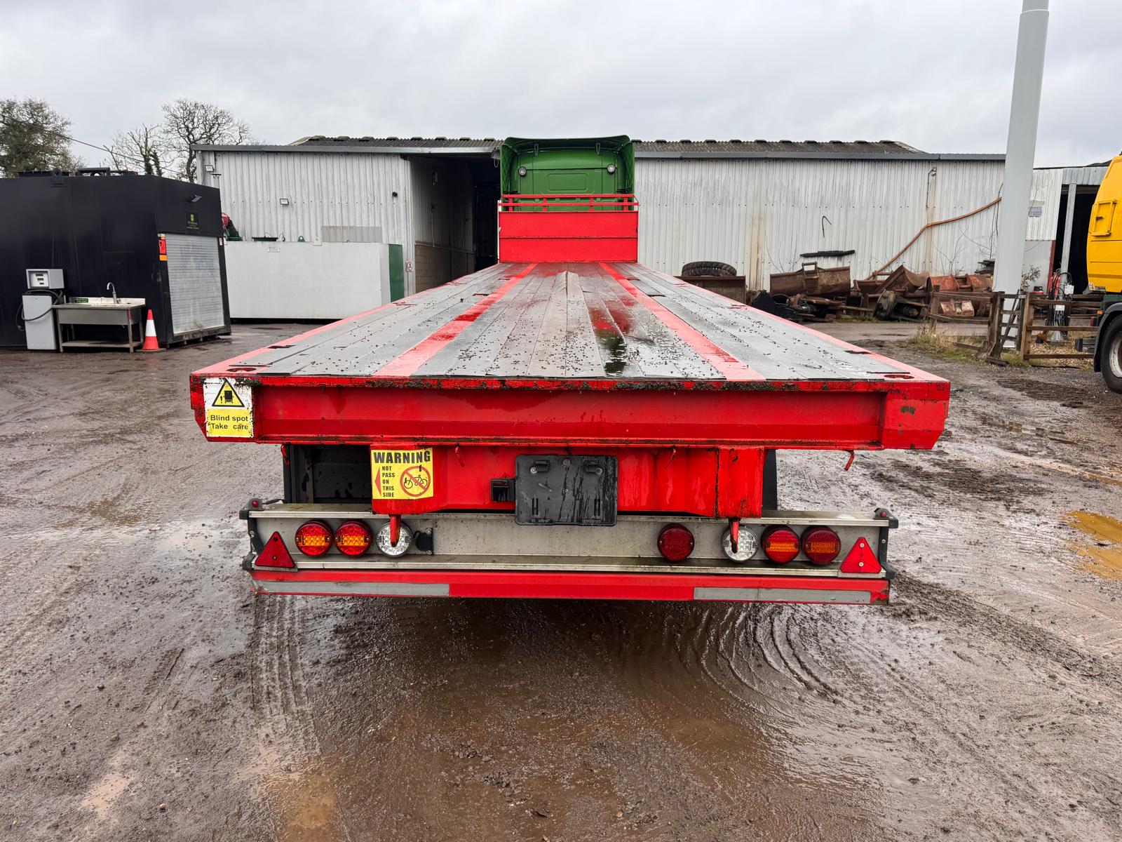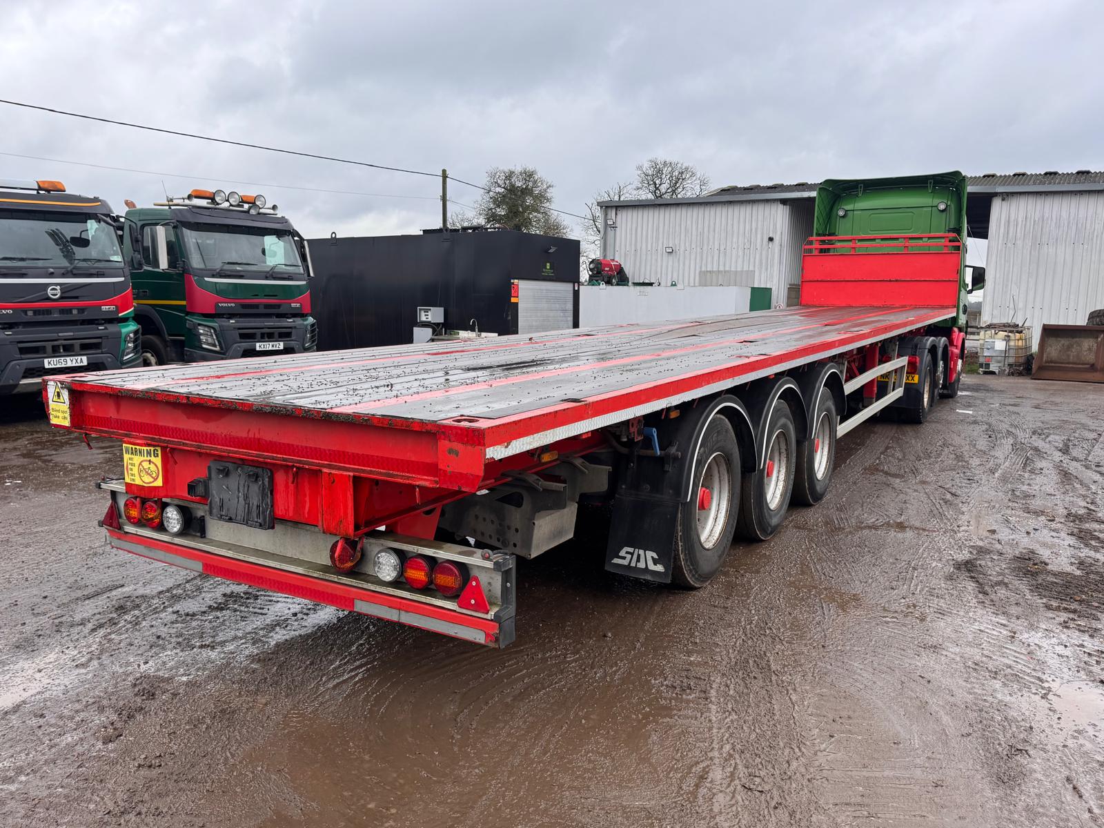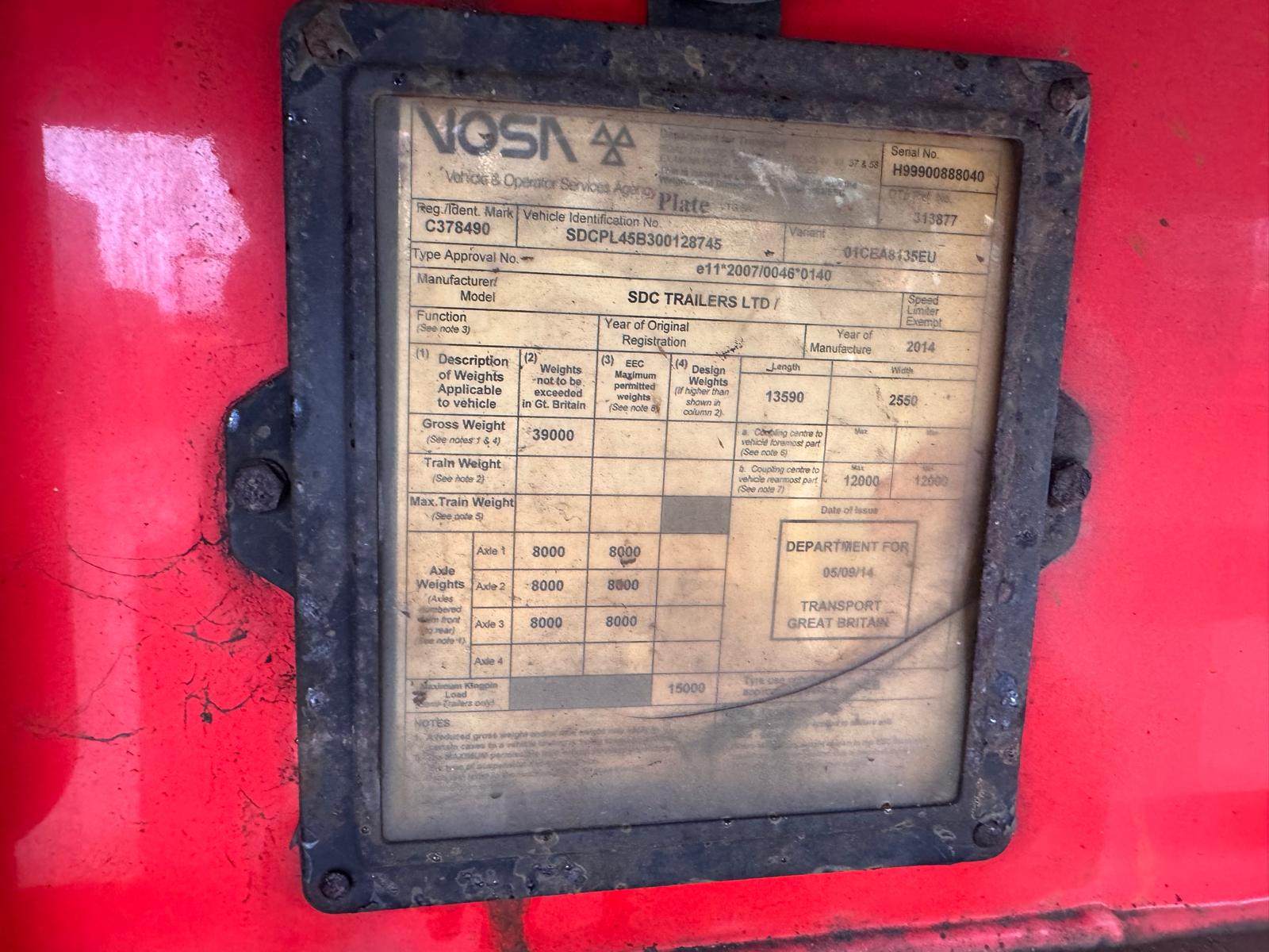 2014 SDC 45FT FLAT TRAILER, POST HOLES, CONTAINER LOCKS, AIR SUSPENSION, POST CARRIER, STORAGE BOX, JUST OUT OF TEST BUT CAN BE ARRAGNGED. STRAIGHT TRAILER