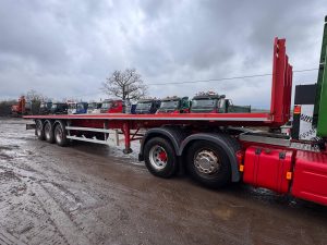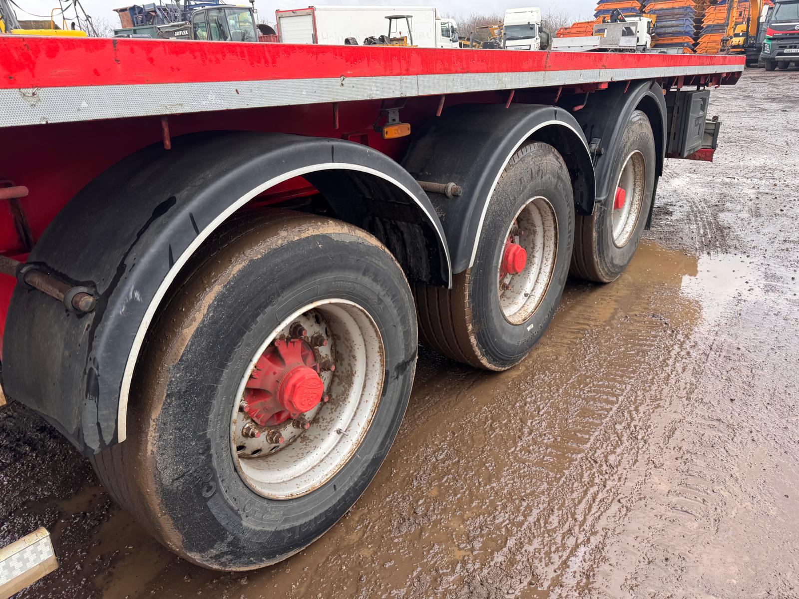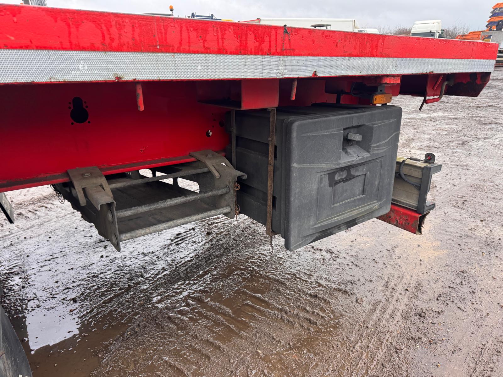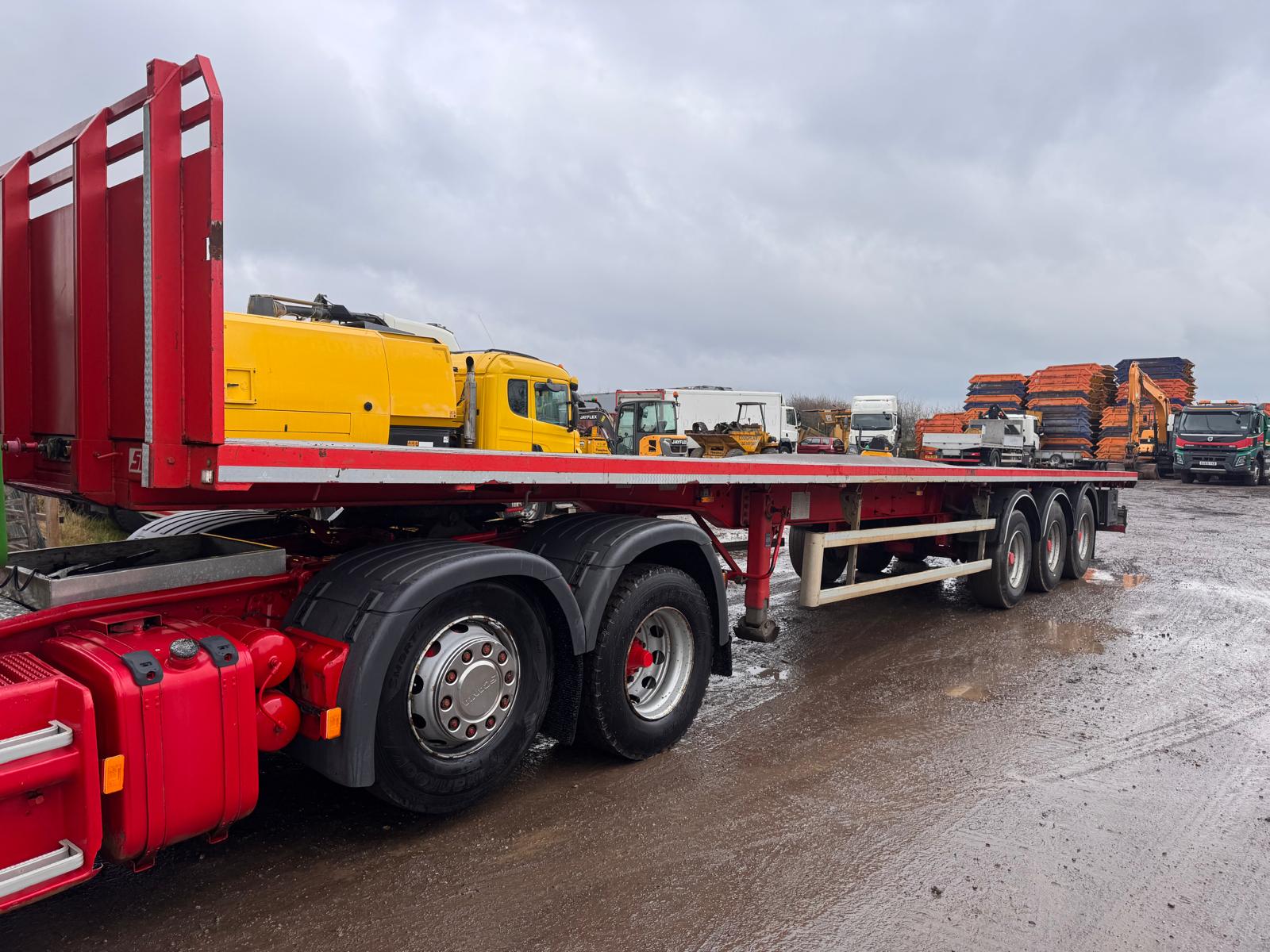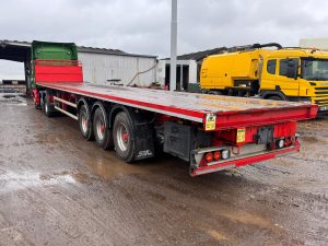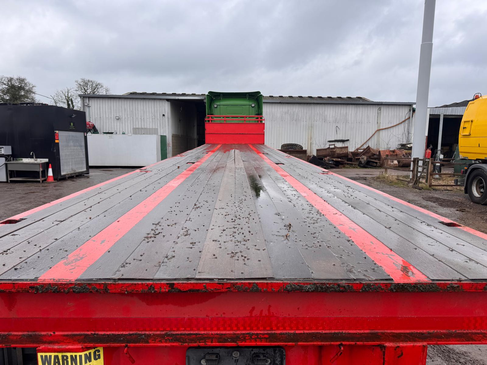 2014 SDC 45FT FLAT TRAILER, POST HOLES, CONTAINER LOCKS, AIR SUSPENSION, POST CARRIER, STORAGE BOX, JUST OUT OF TEST BUT CAN BE ARRAGNGED. STRAIGHT TRAILER